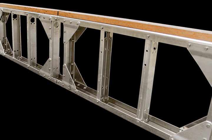 The solid one-piece crossmembers feature an offset web and a specialized reinforced inner extrusion, providing additional strength between the main beams.