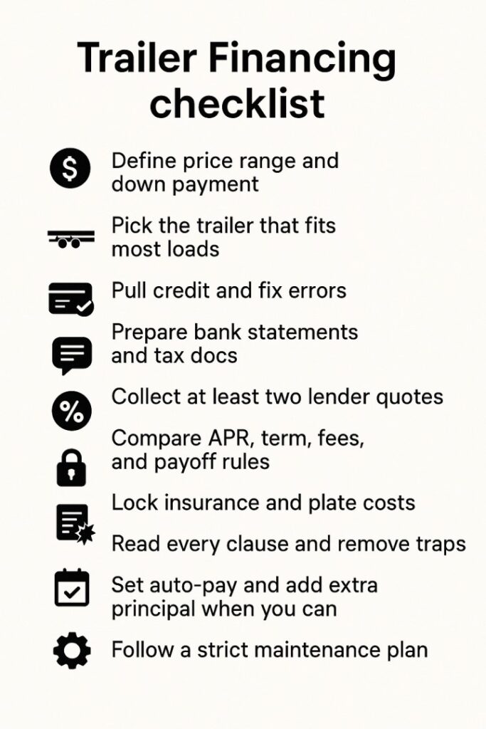 Financing a trailer shapes cash flow and uptime. Treat the loan like a tool.
